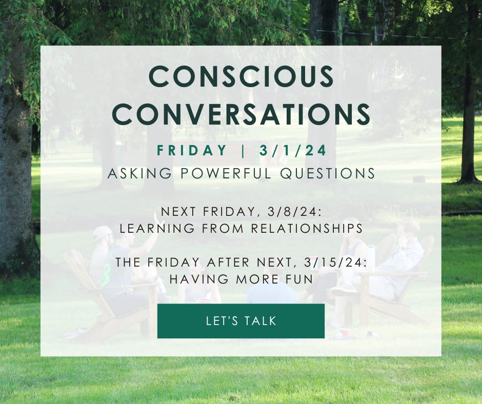 Before every Conscious Conversation, we do our best to come up with powerful / impactful / thought-provoking questions related to that weekās topic, to help you learn more about yourself & others.